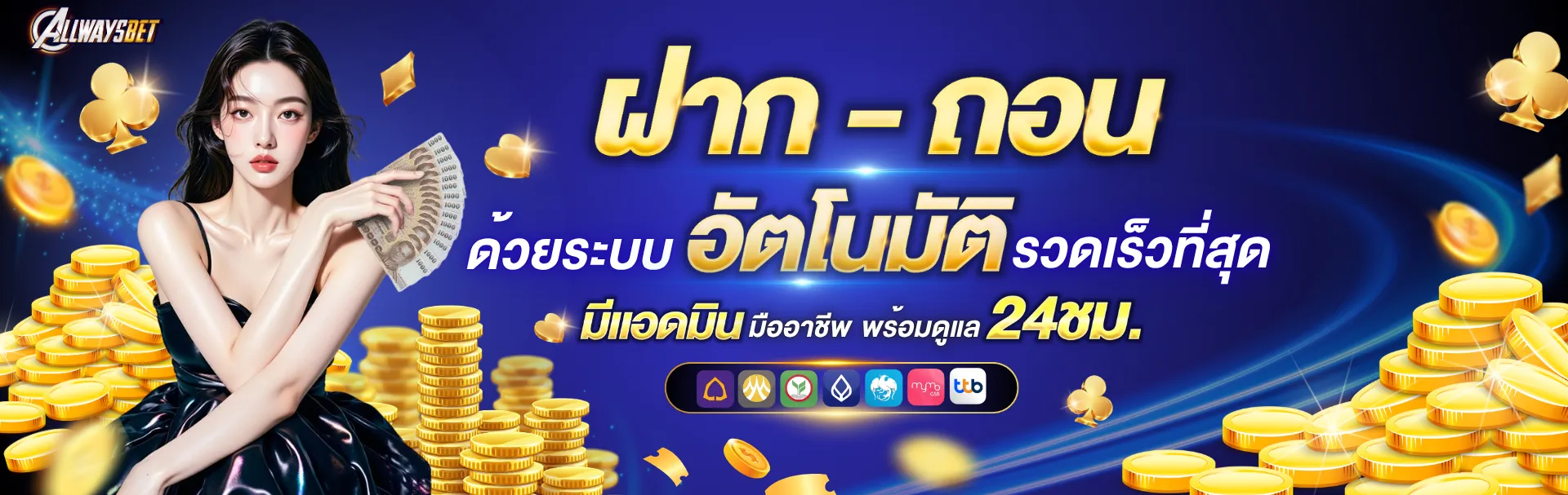 ที่น่าประทับใจไปกว่านั้น AllwaysBet รองรับการทำธุรกรรมผ่านธนาคารชั้นนำทุกแห่งในประเทศไทย ไม่ว่าจะเป็น กสิกรไทย ไทยพาณิชย์ กรุงเทพ กรุงไทย หรือธนาคารอื่นๆ รวมถึงช่องทาง e-wallet อย่าง True Money Wallet ทำให้การเติมเงินและถอนเงินเป็นเรื่องง่าย สะดวก และปลอดภัย ระบบทำงานอัตโนมัติตลอด 24 ชั่วโมง ไม่ต้องรอนาน